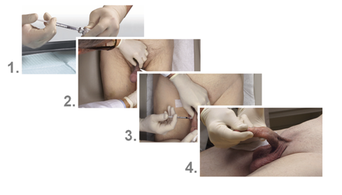 - Injection of local anaesthetic and a drug that induces an erection